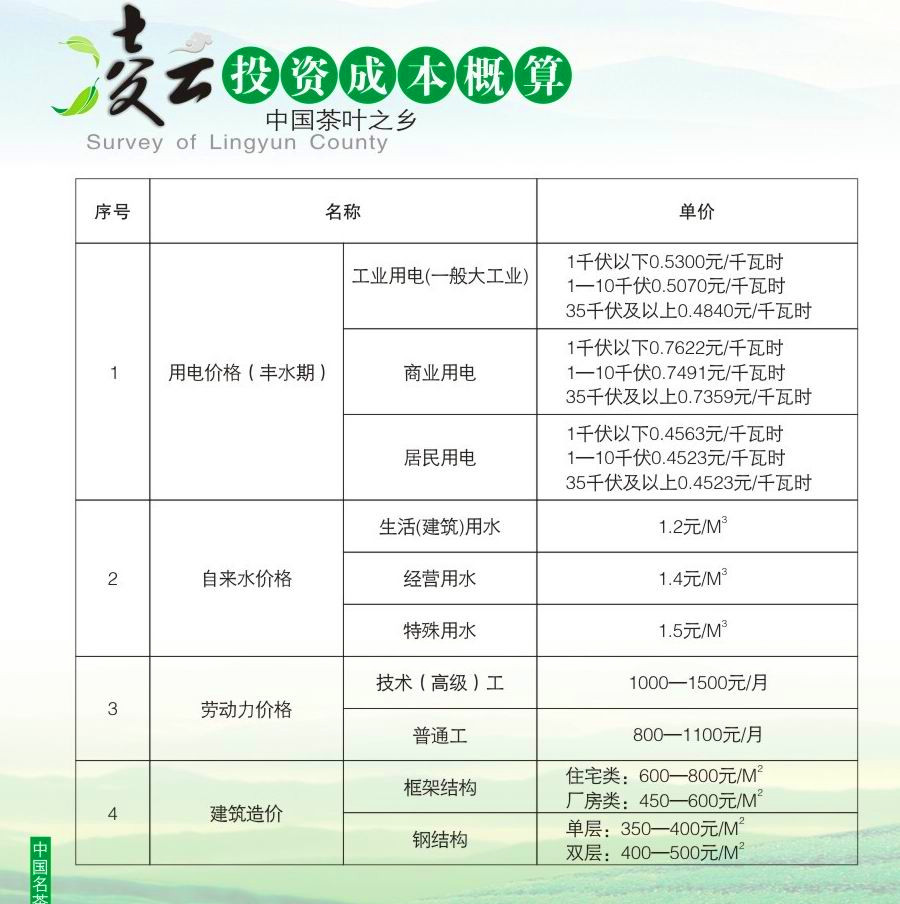 凌云投资成本概算