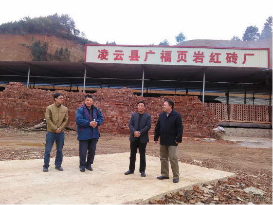 图为考核组在年产1.2亿块环保型页岩烧结砖项目点考察