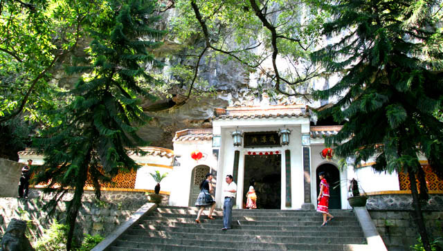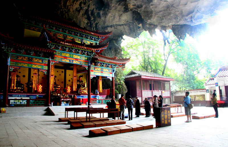 水源洞旅游景区位于凌云县城北百花山下,距凌云县城约1公里,是凌云县著名的岩溶景点和佛教旅游胜地,也是广西壮族自治区重点文物保护单位,自治区级森林公园,百色市十八景之一。水源洞景区分为内洞和外洞两部分。洞外绿堤两道,垂柳、古榕遍岸,飞鸟争鸣,两座对称排列的石拱小桥,古朴典雅。从洞内流出的河水冬暖夏凉,形成了一座天然泳场。清幽的河水中,游鱼怡然自得,尽显宁静和安逸。洞内有占地22000平方米、宽38米、高20.8米的大厅。洞门最高处的山崖绝壁上,刻有乾隆四十三年(1778)左江观察使王玉德所题的“第一洞天”四个雄伟苍劲的大字,大厅四周绝壁上刻有明、清以来文人墨客的题字、题联、题诗80余幅,是凌云县古石刻最集中、保护最完整的地方,展示了凌云近千年的州、府、县建制历史文化。大厅内供奉弥勒、观音、罗汉等神像和建有三开间问心庙,因其具有灵性,香客络绎不绝。大厅深处的内洞,长约1000米,洞内石笋千姿百态,维妙维俏,现辟有5大景区20多个景点供游人观赏游玩,是集溶洞探秘和烧香朝拜的旅游胜地,现北京故宫博物馆存的泗城府画卷中就有水源洞一景。