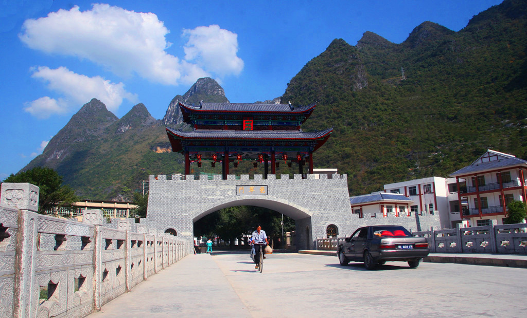 挹翠门是古泗城府四大城门的西南门,始建于清朝康熙年间,公元1956年凌百公路建设时被毁,2009年由凌云县人民政府投资重建于下关桥东桥头。