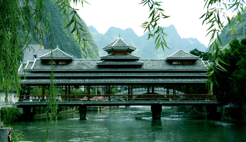 金水桥系澄碧河凌云县城河段的第一座风雨桥,建于2007年3月,桥长35米,宽10米,大桥按古典风格,木瓦结构风雨桥模式建成。